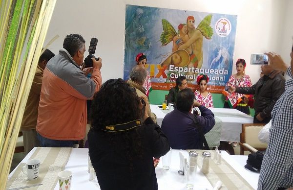 San Luis Potosí, S.L.P.. Con cerca de 20 mil artistas de todos los estados del país, el Movimiento Antorchista Nacional realizará del 28 de enero al 5 de febrero, en Tecomatlán, Puebla, la XIX Espartaqueada Cultural Nacional, en las instalaciones del auditorio "Clara Córdova" y "Foro Sol", así lo informó en rueda de prensa Euríbiades García Córdova, vocero Antorchista del estado de San Luis Potosí.