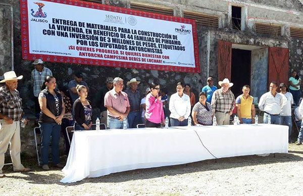Con la asistencia de la Delegada de la Secretaria de Desarrollo Agrario, Territorial y Urbano (Sedatu) en Jalisco, Engracia Vuelvas Acuña y de la alcaldesa de Pihuamo, Elizabeth Alcaraz Virgen, a través de un evento encabezado por la líder del antorchismo en el Sur y Sureste de Jalisco, Guadalupe Valle Chávez, se hizo la entrega de material de construcción para Unidades Básicas de Vivienda para alrededor de medio centenar de familias de la colonia Antorcha Campesina de reciente creación.