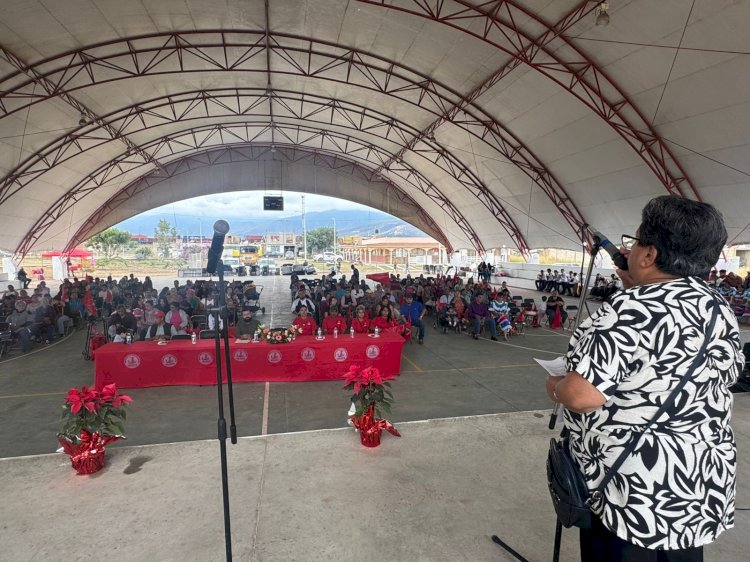 Durante las palabras de bienvenida, Guadalupe Valle realizó un recuento de los logros materiales y espirituales alcanzados gracias a la lucha organizada de los colonos, destacando la introducción de servicios básicos.