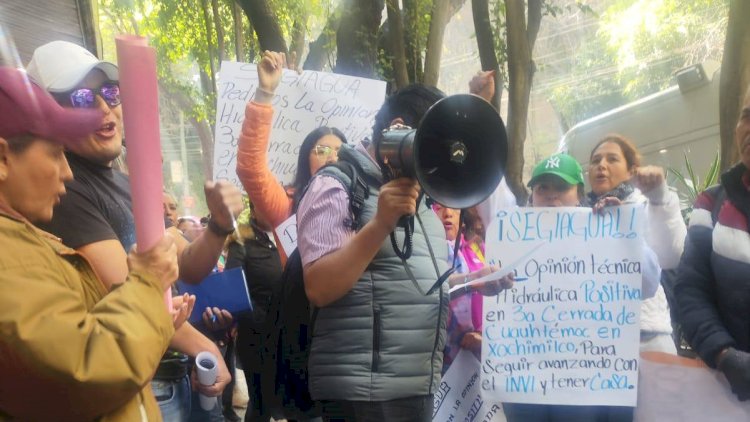 Antorchistas de Xochimilco se manifiestaron a través de una cadena humana frente a la oficinas de SEGIAGUA, una vez que no hay avances en los dictámenes técnicos hidráulicos que el INVI requiere para concretar un proyecto de vivienda impulsado por el Movimiento Antorchista, que beneficiaría a familias que no cuentan con vivienda.